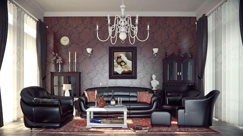 - Living Room: Choose deep green walls, heavy drapes, and vintage leather seating. Add in brass lamps and symbolic art.